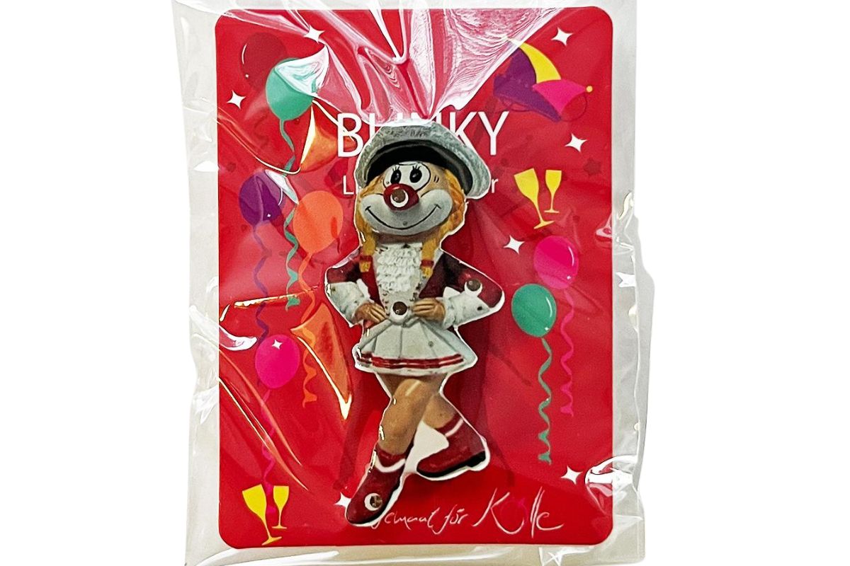 Das lustige Funkemariechen Blinky von den Schmitzens vereint kölsche Tradition, Humor und Lebensfreude in einem dekorativen Kostümaccessoire. Dank der Sicherheitsnadel auf der Rückseite lässt sich der LED-Anstecker schnell und sicher an Jacken, Kostümen, Taschen oder Mützen befestigen.
