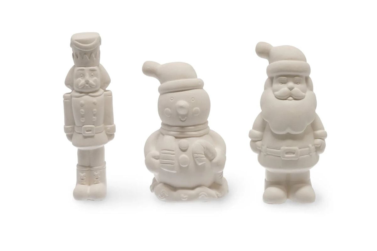 • 3 Gipsfiguren: Nussknacker, Schneemann & Weihnachtsmann