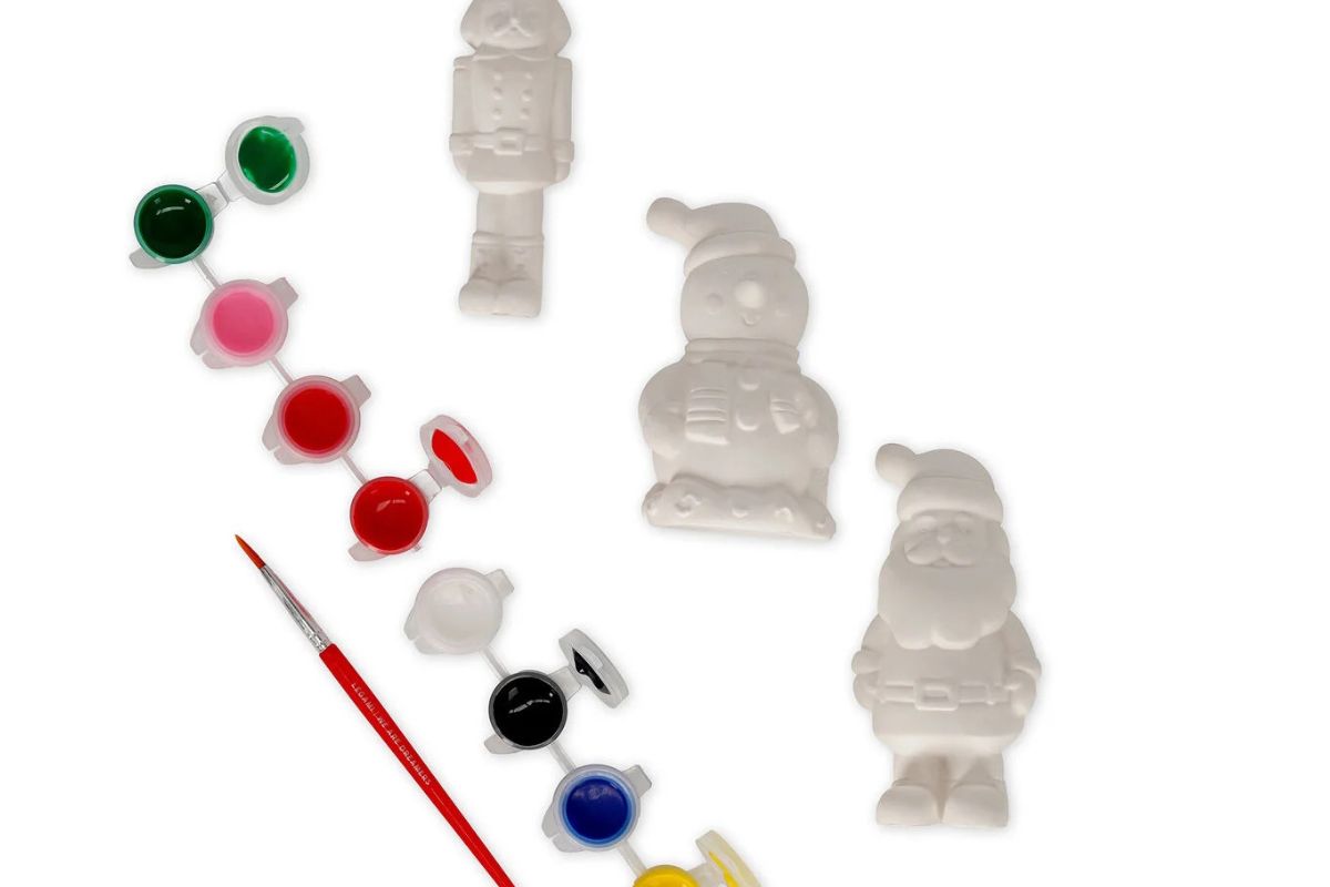• Enthält: 3 Gipsfiguren (Nussknacker, Schneemann, Weihnachtsmann); 7 Tempera-Farben; 1 Pinsel